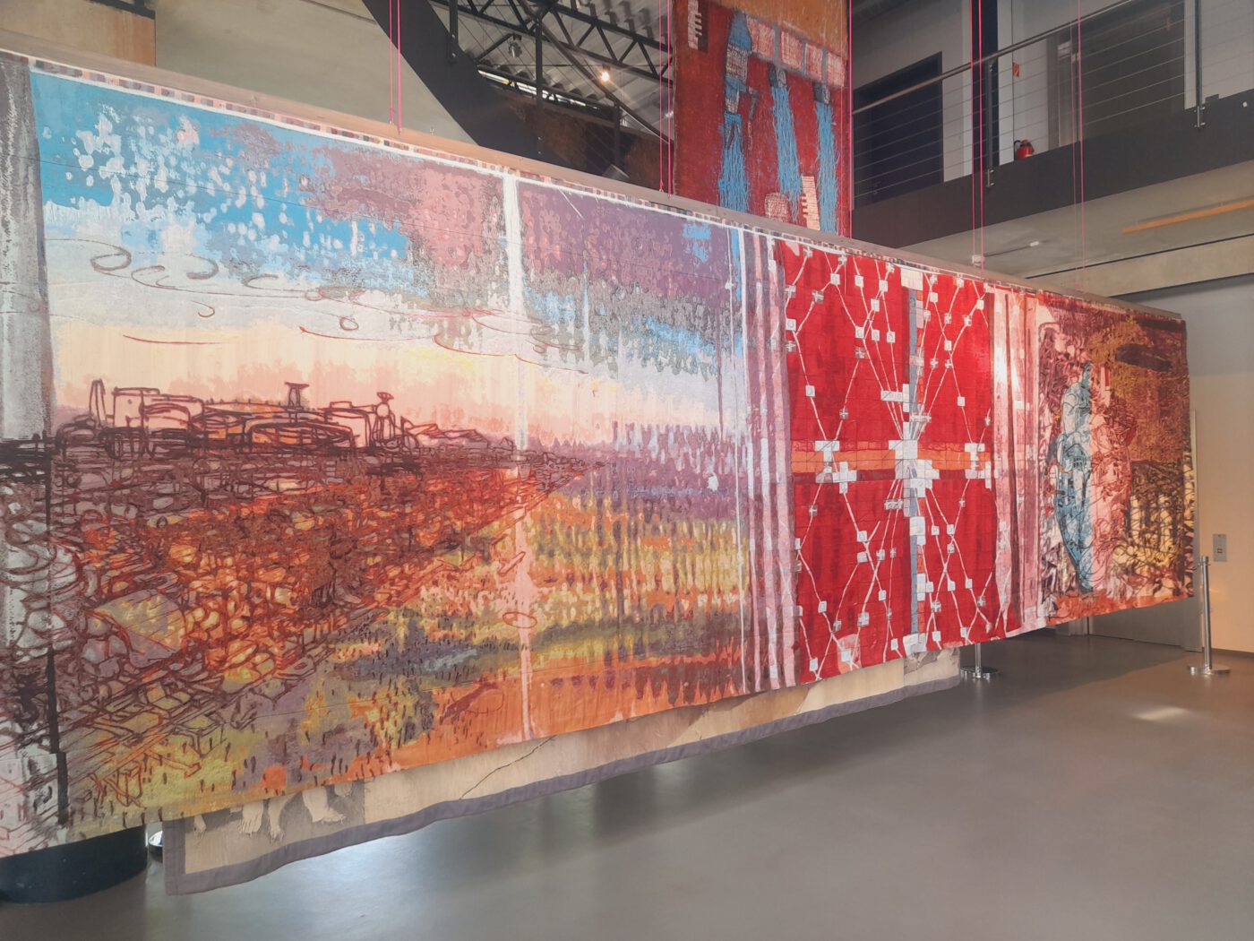 Die zweite Station unserer Tour führte uns in das Kultur Palais Lichtenstein. Dort wird im Kulturhauptstadtjahr 2025 die Ausstellung „Textile Bilder“ gezeigt, die das textile Erbe der Region in den Fokus rückt. Die dort ausgestellten 60 Werke des Lichtensteiner Künstlers Ulrich Reimkasten, verbinden künstlerischen Ausdruck mit historischer Industriekultur. Die über LEADER geförderte Ausstellung würdigt nicht nur sein Lebenswerk, sondern stärkt auch den Kulturstandort und die touristische Entwicklung. Außerdem ist die Ausstellung Teil des Kunst- und Skulpturenweges „PURPLE PATH“, dem Aushängeschild der Kulturhauptstadt Chemnitz. Ein Highlight der Ausstellung ist das „Lichtensteiner Tafeltuch“, ein beeindruckendes 100 Meter langes Kunstwerk welches von der traditionsreichen Weberei F. A. Kreißig & Sohn nach einem Entwurf von Reimkasten umgesetzt wurde. An diesem Tafeltuch fand ein großes Bürgerpicknick statt und alle Teilnehmer konnten anschließend ein Stück des Tafeltuches als Erinnerung mit nach Hause nehmen.
