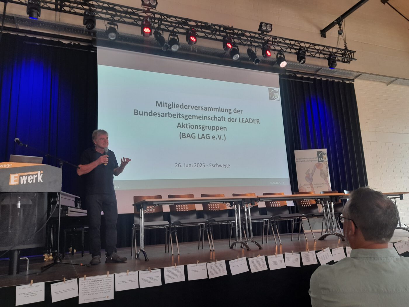 Bei der diesjährigen Mitgliederversammlung der BAG LAG (Bundesarbeitsgemeinschaft der Lokalen Aktionsgruppen) kamen Ende Juni Vertreterinnen und Vertreter aus ganz Deutschland im E-Werk in Eschwege zusammen, um gemeinsam über die Zukunft der LEADER-Förderung zu diskutieren.
